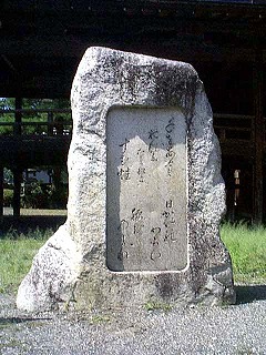 この二つの句は、本堂と大広間の間の渡り廊下(ろうか)の前に立っている碑(ひ)に刻(きざ)まれています。