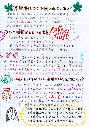 津軽弁の特徴を知り、ひとつの単語「く」で意味が通じることに驚きを感じています。また、イントネーションの働きにも気づいています。