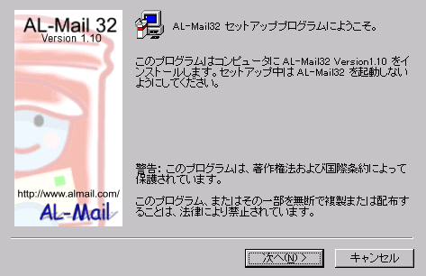 (1) フォルダにあるAL-Mailのセットアップファイルをダブルクリックします。