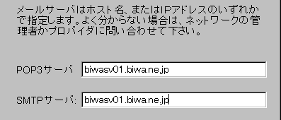 ※プロバイダから知らされたPOPサーバーとSMTPサーバを設定します。