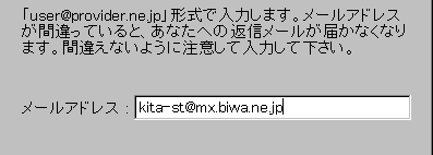 ※メールアドレス(例:[kita-st@mx.biwa.ne.jp])を入力します。