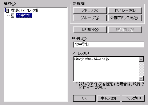 ※たびたび送信する相手を登録しておくと、送信の際にいちいち相手のメールアドレスを書き込まなくても「アドレス帳」から選択できるようになります。