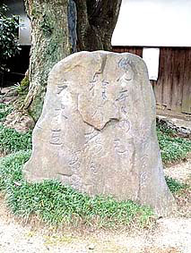 句碑の後ろの木が、椎の木。この木は、2代目だといいます。