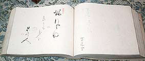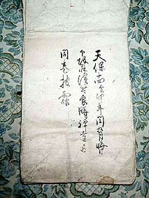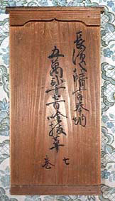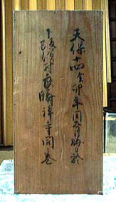 良疇寺には、蕉門俳諧(しょうもんはいかい)の隆盛の証(あかし)が残されていました。 ご住職のお話では、かつてお寺で盛んに句会が催されていたのではないかといいます。 その中心人物は、松菓五蔭(しょうかごいん)という人物で、芭蕉の門弟・森川許六(彦根出身)の孫弟子になるそうです。彼は、宮川藩の代官で、その代官屋敷がお寺の東側に隣接して建っていたというのです。(彼の墓も、良疇寺にあります。) そうした関係で、良疇寺で、度々大がかりな句会が催され、そうした折りに、下の写真の木像を飾り、芭蕉を偲(しの)んだのだろうといいます。 |
