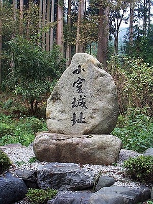 浅井町小室の杉林の中に「小室城址」と刻まれた石碑が建っている。 小堀遠州が、江戸時代初期、この小室周辺の地を所領としていたのです。 |