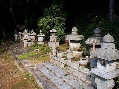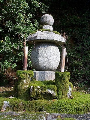 孤篷庵の入り口には小堀一族の墓地があります。その墓を見ると、他ではあまり見かけることのない円形の墓碑や、抹茶茶碗をかたどった高大などがあります。 一族のセンスが忍ばれます。 |