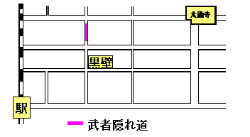 戦いのときにその不規則に並んだ屋敷と屋敷の間に身を隠したと伝えられていることから「武者隠れ道」と呼ばれていると伝えられています。