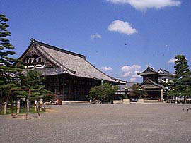 境内・山門・本堂 境内はおよそ七千坪で壮大なケヤキ造りの山門は、文化年間の大工宮部太兵衛らに建てさせたといわれています。また、本堂は東本願寺の御影堂をうつしたもので、もとは伏見城にありました。真宗大谷派の長浜別院で、本堂や大広間は旧桃山城の遺構といい、阿弥陀如来をまつるところから、阿弥陀堂とも呼ばれています。一八〇八年に、起工され三二年間かけてようやく完成した堂々たる二層門です。 |