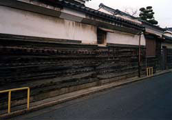 北国街道碑の近くを歩いていると、珍しい塀が見えてきます。