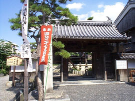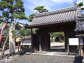 天台宗真盛派の寺。もとは、小谷城下にありましたが、秀吉が町並みの北東の地に移して長浜城の鬼門(きもん)の守護としました。 本尊阿弥陀三尊の像は秀吉が中国攻めの時、播磨(はりま:兵庫県西部)の書写山(しょしゃざん)から持ち帰ったのもです。 観音堂の十一面観世音菩薩はめずらしい坐像で、運慶の作といわれ、重要文化財の指定を受けています。 表門は元長浜城の搦手門(からめてもん:裏門)を移したもので、どっしりとした山門です。 曽呂利新左衛門(そろりしんざえもん)が作り、もと大阪城中に置かれていたと伝える秀吉の木像や、淀君の自筆消息(手紙)など多くの古文書を所蔵しています。 |