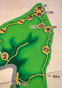 横山城は、長浜市と山東町の境界をなす横山丘陵(臥竜山)の頂上(標高321m)を中心に、三方の尾根にY字形に遺構が残されています。 その主な施設は、40ヶ所以上の典輪(くるわ)で、その他、各所に土塁(どるい)・堀切(ほりきり)・堅堀(かたほり)などの防御施設(ぼうぎょしせつ)が設けられています。 これらは堅固(けんご)なもので、典型的(てんけいてき)な戦闘用の山城であったと言えます。 この城は、織田・浅井の合戦の舞台となりました。元亀元年(1570)の姉川の合戦以前は、浅井氏の出城でしたが、合戦で織田方に奪われました。 そして、この城を預り、浅井・朝倉軍に備えたのは、秀吉です。浅井氏は、この城を奪い返そうと何度か攻めましたが、秀吉は守り通しました。 その後、天正元年(1573)の織田信長の小谷城攻めのときには、織田方の本営が置かれ、大変重要な役割を果たしたと考えられています。 こうして、この城は、秀吉にとって、その後湖北地方を治める直接の足がかりとなりました。 <城の特徴> ※この城には、本丸が二つあります。「別城一郭」といい、もともと二つの城が一つに組み合わさってできたからです。 横山城は、室町時代に湖北を治めていた京極氏の支城として築かれました。 その後、浅井氏が小谷城の出城として利用しました。浅井長政のときに本格的な改築が行われたといいます。浅井氏は、南方への前線基地として利用したのです。 そして、姉川の合戦で、織田方に移ると、小谷城攻撃の基地として活用されました。 遺構からは、北城(第2本丸)が浅井氏のもので、南城(第1本丸)が秀吉が築いたものだと考えられています。 ※この城には、石垣はありません。土塁(どるい)という土を盛った塀や堀切(ほりきり)という空堀などで、敵を防ぎました。 ※城郭は、南北約650m、東西約350mもある大きな城だったそうです。 |