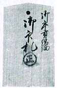 彦根藩の統制下で、ちりめん業者は、すべての製品を難波村の織元に送り、印料を納めました。「浜ちりめん」を高級織物の一大消費地である京都で販売するためには、「彦根藩年貢ちりめん誹機(あつらえばた)」という名義(めいぎ)の「誹札(あつらえふだ)」という鑑札(かんさつ:許可証)が必要だったからです。 これにより、彦根藩は、有利な財源(ざいげん)を得たといいます。 こうして「浜ちりめん」は、彦根藩の生産と販売の両面からの支援もあって、大変売れるようになったといいます。 |