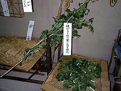 蚕が大きくなると、桑の葉に木をつけたまま食べさせます。
