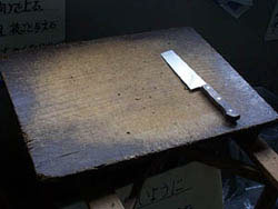 蚕が幼虫(稚蚕:3令まで)の頃は、桑を細かくして食べさせる。このため、摘んできた桑を細かく切って与えます。