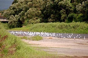 虎姫町大井辺りの河川にシラサギの餌場がありました