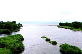 河口付近には、大きな洲があります