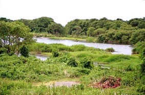 河口の洲は、まるでちょっとした湿地帯のようです。