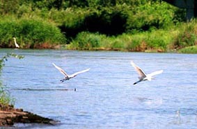 河口付近、岸の切れたところはもう琵琶湖です。