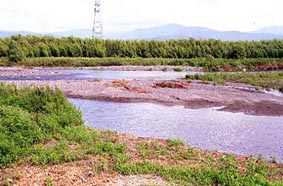 姉川が、龍ヶ鼻をめぐって長浜の平野部にさしかかる辺りです。