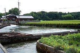 伊吹発電所のそばにある合同井せきから流れてきた用水が、ここで分水されます。