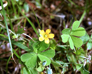 茎は地面をはって四方に広がり、花は、直径1cmで、黄色。